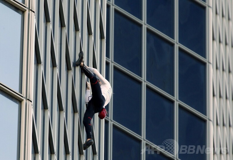 仏スパイダーマン、186メートル高層ビル「登頂」成功