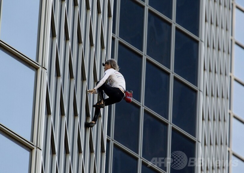 仏スパイダーマン、186メートル高層ビル「登頂」成功
