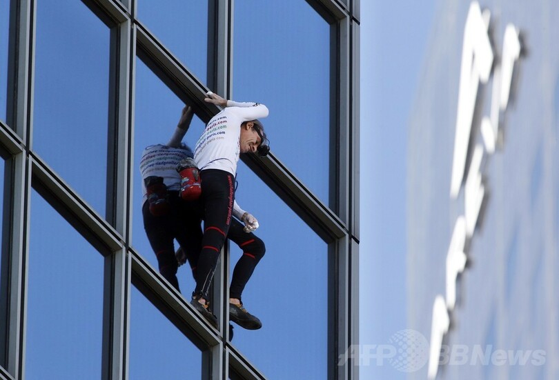 仏スパイダーマン、186メートル高層ビル「登頂」成功