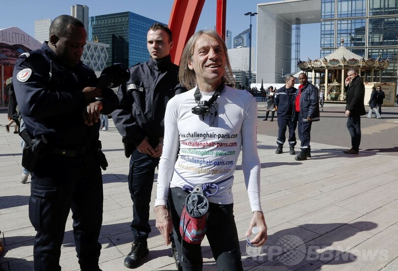 仏スパイダーマン、186メートル高層ビル「登頂」成功