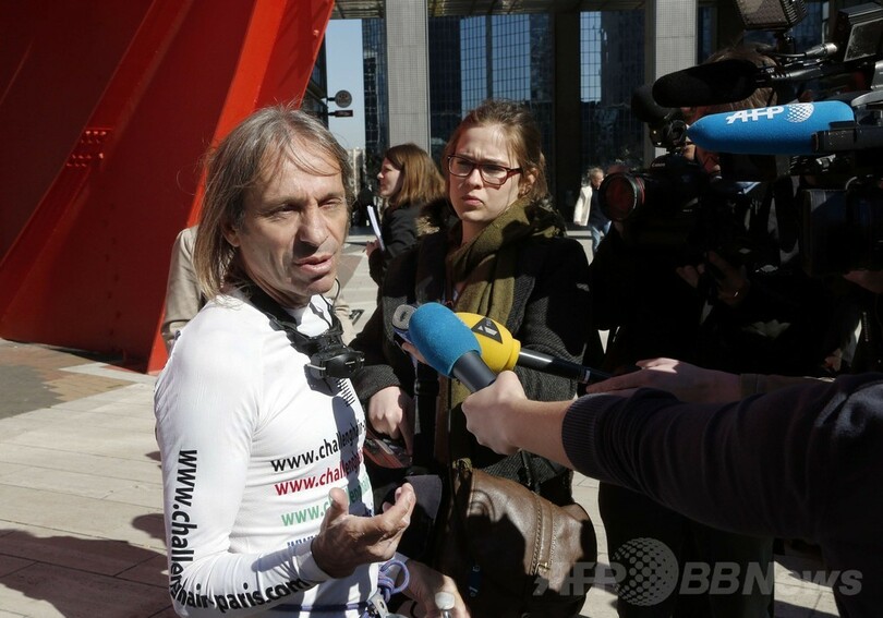 【3月21日 AFP】世界各地の高層建築に登り「スパイダーマン(Spiderman)」の異名を取るフランス人フリークライマー、アラン・ロベール(Alain Robert)さんが20日、パリ(Paris)近郊のビジネス地区ラ・デファンス(La Defense)にある仏石油大手トタル(Total)の本社ビル(高さ186メートル)への「登頂」に挑み、見事成功した。(c)AFP