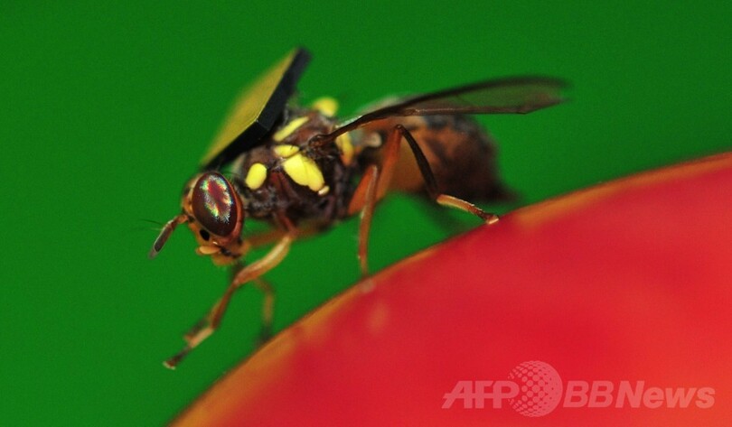 クインスランドミバエはオーストラリアに広く生息し、69億オーストラリア・ドル(約6400億円)規模の同国の園芸農業にとって深刻な脅威となっている。CSIROの研究者らは、幼虫が本来の性別と無関係に生殖能力のないオスに成長するような遺伝子をクインスランドミバエの幼虫に入れる研究を進めている。(c)AFP