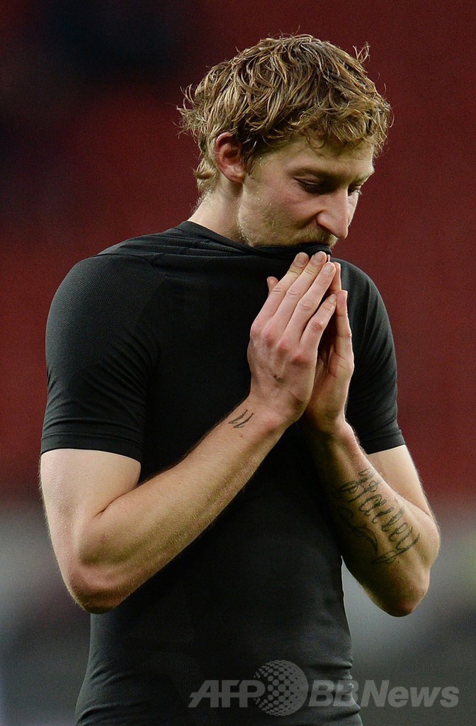 レバークーゼンは、後半9分に主将のシモン・ロルフェス(Simon Rolfes)のゴールで再び同点に追いついたが、試合終了間際にモデストがクロスに合わせて決勝ゴールを挙げた。(c)AFP/Ryland JAMES