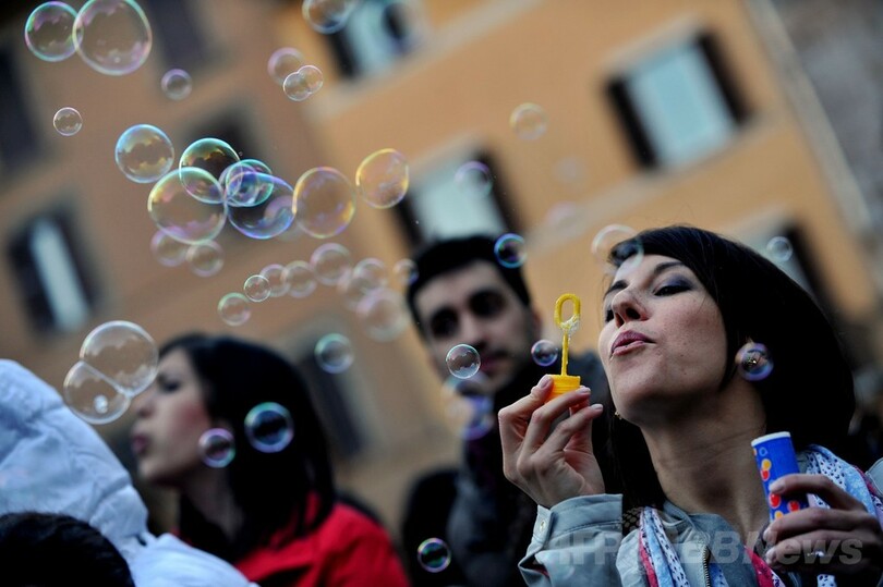 ニュース ライフ こぼれ話 パンテオンを彩るシャボン玉、ローマ 2014年3月24日 15:46 発信地:ローマ/イタリア [ ヨーロッパ イタリア ] このニュースをシェア ‹ › ❮ 14/15 ❯ イタリア・ローマ(Rome)のパンテオン(Pantheon)付近で行われた「フラッシュモブ」のイベントで、シャボン玉遊びに興じる参加者(2014年3月22日撮影)。(c)AFP/TIZIANA FABI 画像作成中 ! 【3月24日 AFP】イタリア・ローマ(Rome)で22日、インターネットなどを通じた呼びかけに応じ、特定の場所に多数の人が集結して一斉に同じ行動をとる「フラッシュモブ」スタイルのイベントが行われ、パンテオン(Pantheon)付近で大勢の人々がシャボン玉遊びに興じた。(c)AFP ライフ 一覧へ> メディア・報道関係・法人の方向け 写真・動画 購入のお問合せ>