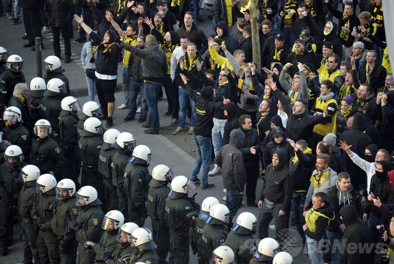 この試合では、安全上の懸念から約3000人の警察官が動員されたが、問題は報告されていない。(c)AFP