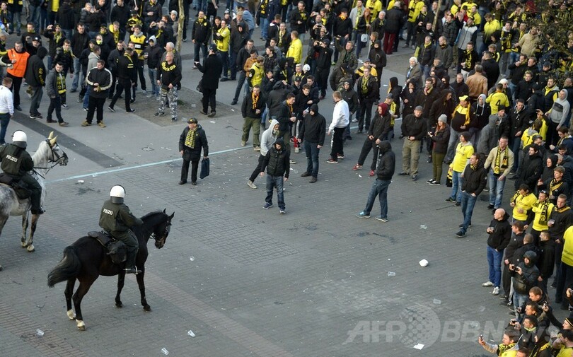 この試合では、安全上の懸念から約3000人の警察官が動員されたが、問題は報告されていない。(c)AFP