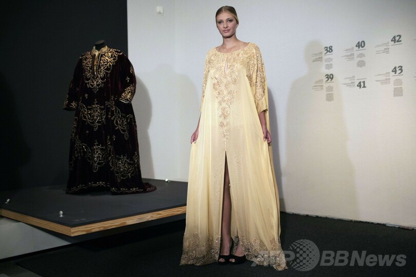同展では、19世紀から20世紀にかけてユダヤ人が着用していた伝統的な衣服を展示。25日には、イスラエル人デザイナーのLee GrebenauやFaro Blauらが、世界各地のユダヤ人の衣服からインスピレーションを得て制作したドレスなどを発表した。(c)AFP