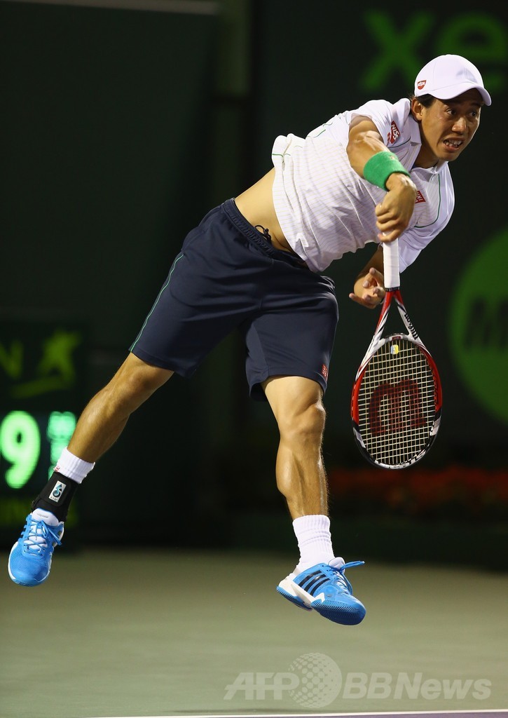 【3月27日 AFP】テニス、ソニー・オープン2014(Sony Open 2014)は26日、男子シングルス準々決勝が行われ、大会第20シードの錦織圭(Kei Nishikori)は3-6、7-5、6-4で第5シードのロジャー・フェデラー(Roger Federer、スイス)を下し、準決勝進出を決めた。