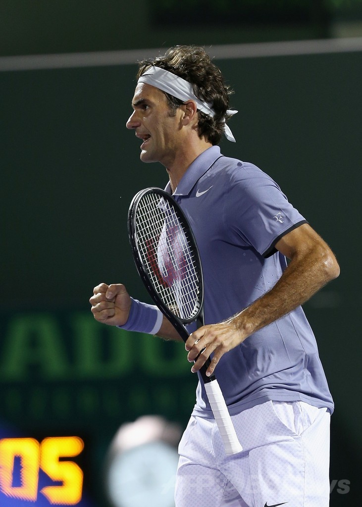 【3月27日 AFP】テニス、ソニー・オープン2014(Sony Open 2014)は26日、男子シングルス準々決勝が行われ、大会第20シードの錦織圭(Kei Nishikori)は3-6、7-5、6-4で第5シードのロジャー・フェデラー(Roger Federer、スイス)を下し、準決勝進出を決めた。
