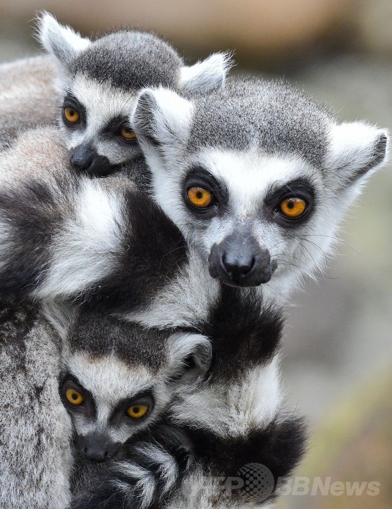 【3月28日 AFP】ドイツ東部エーバースワルデ(Eberswalde)の動物園で、ワオキツネザルが双子の子どもの面倒を見る様子が撮影された。ワオキツネザルはマダガスカル(Madagascar)島の固有種。(c)AFP/DPA