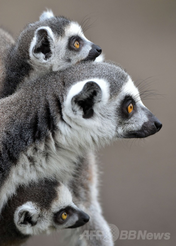 【3月28日 AFP】ドイツ東部エーバースワルデ(Eberswalde)の動物園で、ワオキツネザルが双子の子どもの面倒を見る様子が撮影された。ワオキツネザルはマダガスカル(Madagascar)島の固有種。(c)AFP/DPA