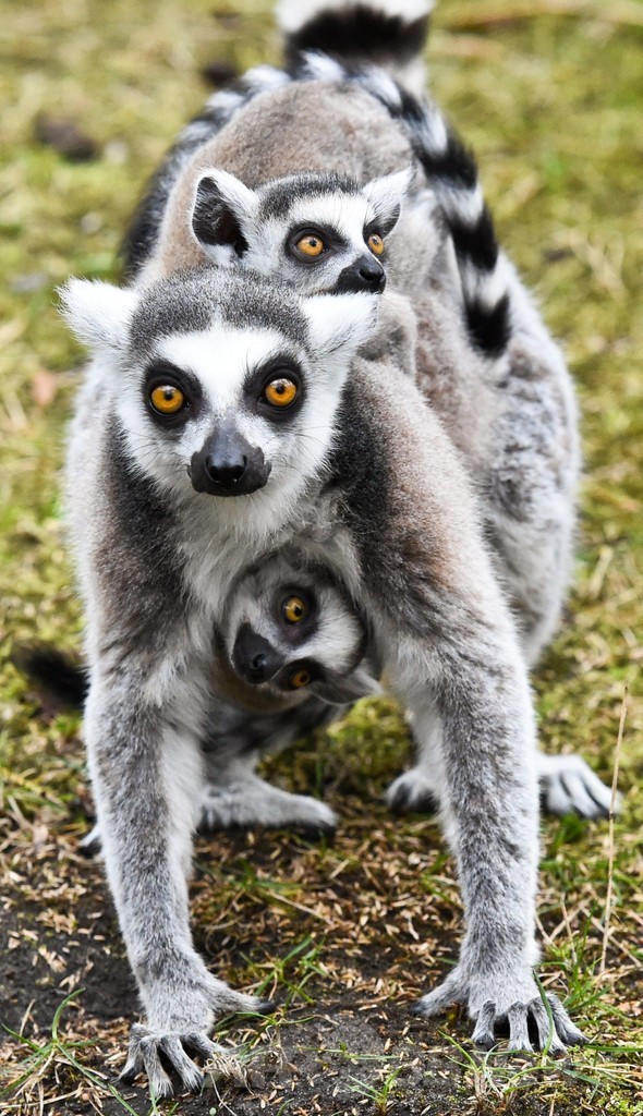 お母さんと散歩?ドイツのワオキツネザル