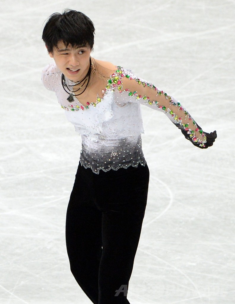 【3月29日 AFP】世界フィギュアスケート選手権(ISU World Figure Skating Championships 2014)は28日、さいたまスーパーアリーナ(Saitama Super Arena)で男子シングル・フリースケーティング(FS)が行われ、羽生結弦(Yuzuru Hanyu)が合計282.59点で優勝した。(c)AFP