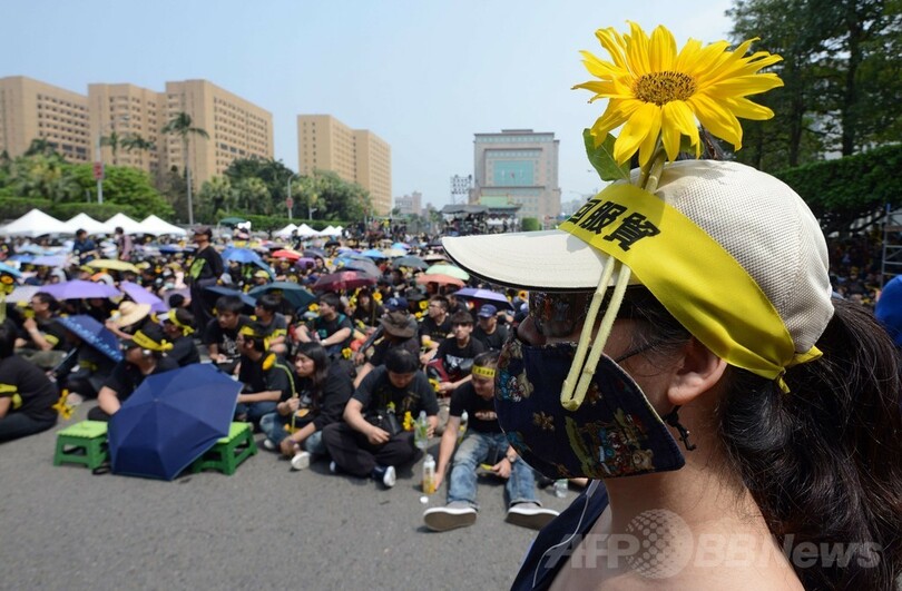 馬総統は前日、中国と交わされる全協定の内容を監視する新法を導入するとの譲歩案を提示していたが、総統府につながる通りはこの日、黒シャツを着て「民主主義を守れ。サービス貿易協定を撤回しろ」と書かれたはちまきを着けるなどした人々で埋め尽くされた。