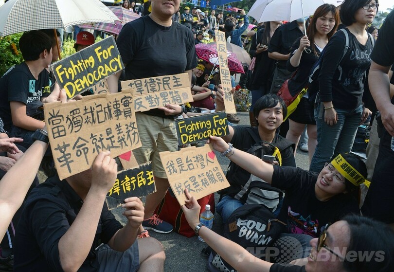 馬総統は前日、中国と交わされる全協定の内容を監視する新法を導入するとの譲歩案を提示していたが、総統府につながる通りはこの日、黒シャツを着て「民主主義を守れ。サービス貿易協定を撤回しろ」と書かれたはちまきを着けるなどした人々で埋め尽くされた。