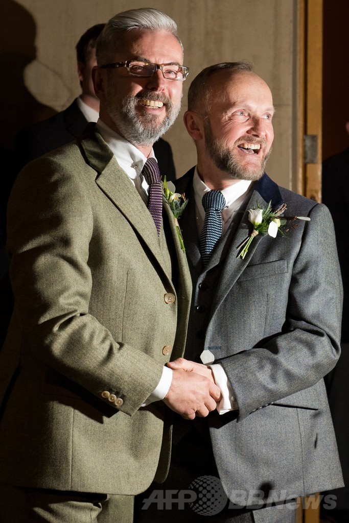 ニュース ライフ 【写真特集】英国で同性婚解禁、幸せカップルが続々挙式 2014年3月31日 19:39 発信地:英国 [ ヨーロッパ 英国 ] このニュースをシェア ‹ › ❮ 19/29 ❯ 英ブライトン(Brighton)のパビリオン宮殿(Royal Pavillion)で挙式した後に写真撮影に応じるアンドリュー・ウェール(Andrew Wale)さん(左)とニール・アラード(Neil Allard)さん(2014年3月29日撮影)。(c)AFP/LEON NEAL 画像作成中 ! 【3月31日 AFP】英国で初めて同性婚が合法化された29日、新法が施行されたイングランド(England)とウェールズ(Wales)の各地では、幸せそうな表情を浮かべた同性カップルが次々と誓いの言葉を交わした。(c)AFP ライフ 一覧へ> メディア・報道関係・法人の方向け 写真・動画 購入のお問合せ>