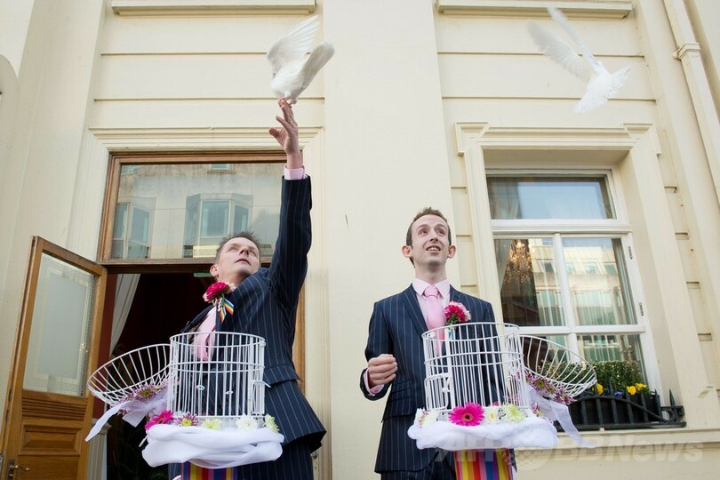 ニュース ライフ 【写真特集】英国で同性婚解禁、幸せカップルが続々挙式 2014年3月31日 19:39 発信地:英国 [ ヨーロッパ 英国 ] このニュースをシェア ‹ › ❮ 16/29 ❯ 英ブライトン(Brighton)で挙式した後に、ハトを空に放つフィル・ロバサン(Phil Robathan)さん(左)とジェームズ・プレストン(James Preston)さん(右、2014年3月29日撮影)。(c)AFP/LEON NEAL 画像作成中 ! 【3月31日 AFP】英国で初めて同性婚が合法化された29日、新法が施行されたイングランド(England)とウェールズ(Wales)の各地では、幸せそうな表情を浮かべた同性カップルが次々と誓いの言葉を交わした。(c)AFP ライフ 一覧へ> メディア・報道関係・法人の方向け 写真・動画 購入のお問合せ>