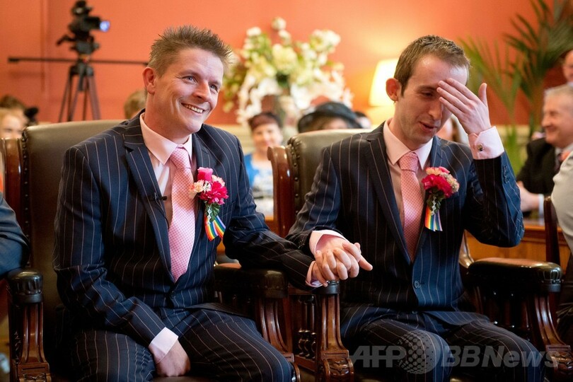 ニュース ライフ 【写真特集】英国で同性婚解禁、幸せカップルが続々挙式 2014年3月31日 19:39 発信地:英国 [ ヨーロッパ 英国 ] このニュースをシェア ‹ › ❮ 11/29 ❯ 英ブライトン(Brighton)で挙式するフィル・ロバサン(Phil Robathan)さん(左)とジェームズ・プレストン(James Preston)さん(右、2014年3月29日撮影)。(c)AFP/LEON NEAL 画像作成中 ! 【3月31日 AFP】英国で初めて同性婚が合法化された29日、新法が施行されたイングランド(England)とウェールズ(Wales)の各地では、幸せそうな表情を浮かべた同性カップルが次々と誓いの言葉を交わした。(c)AFP ライフ 一覧へ> メディア・報道関係・法人の方向け 写真・動画 購入のお問合せ>
