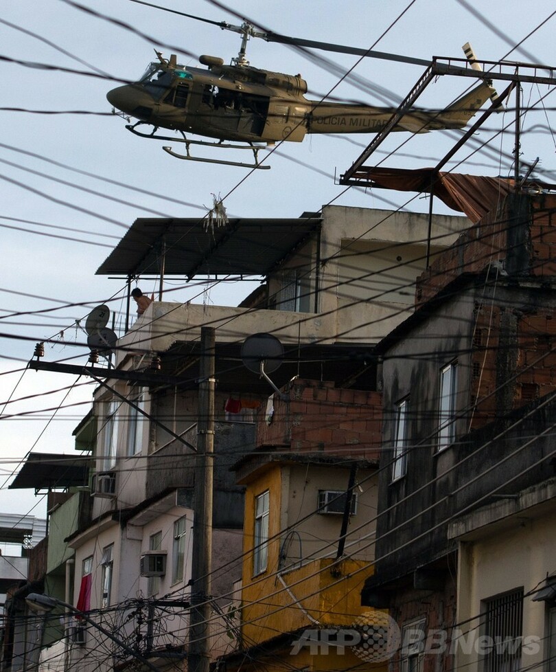 【3月31日 AFP】サッカーW杯ブラジル大会(2014 World Cup)の開幕まで3か月を切ったブラジル・リオデジャネイロ(Rio de Janeiro)で30日早朝、1000人以上の警官隊が、ヘリコプターと海軍の装甲車による支援を受け、リオの国際空港に近いファベーラ(スラム街)を制圧した。