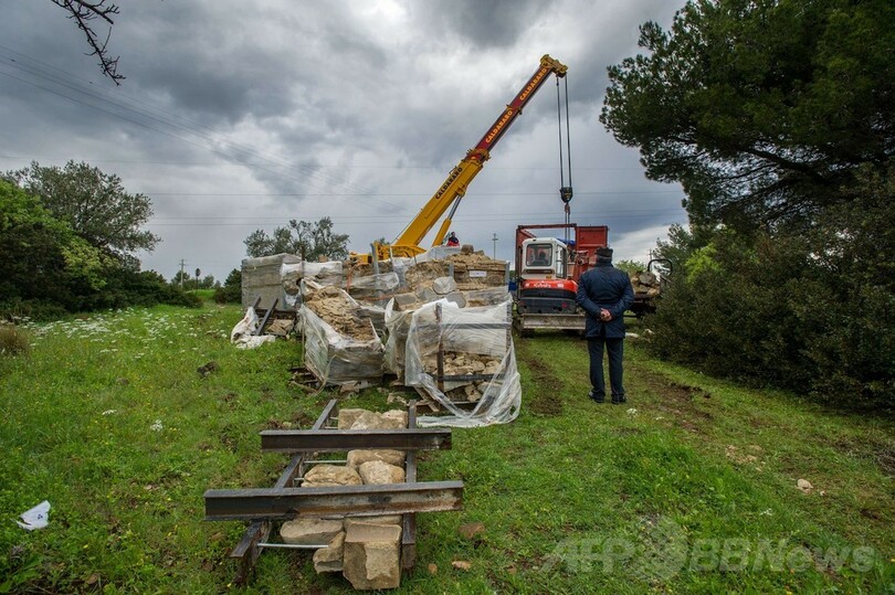 しかしイタリアの遺跡管理当局からの許可が下りず、同国のジョイアタウロ(Gioia Tauro)港で6か月もの間、足止めされていた。(c)AFP