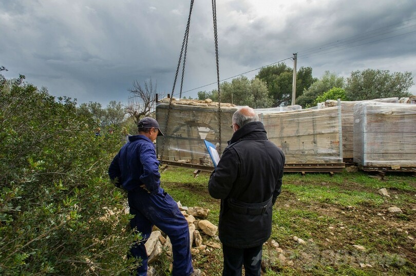 しかしイタリアの遺跡管理当局からの許可が下りず、同国のジョイアタウロ(Gioia Tauro)港で6か月もの間、足止めされていた。(c)AFP