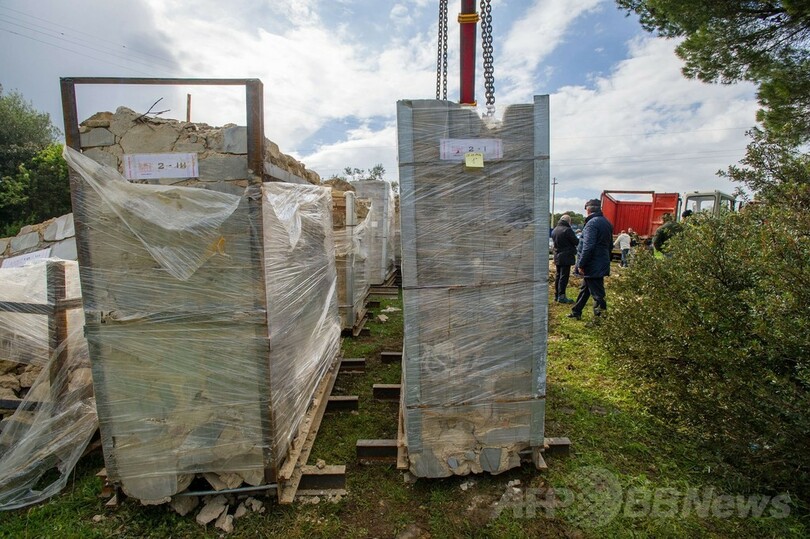 しかしイタリアの遺跡管理当局からの許可が下りず、同国のジョイアタウロ(Gioia Tauro)港で6か月もの間、足止めされていた。(c)AFP