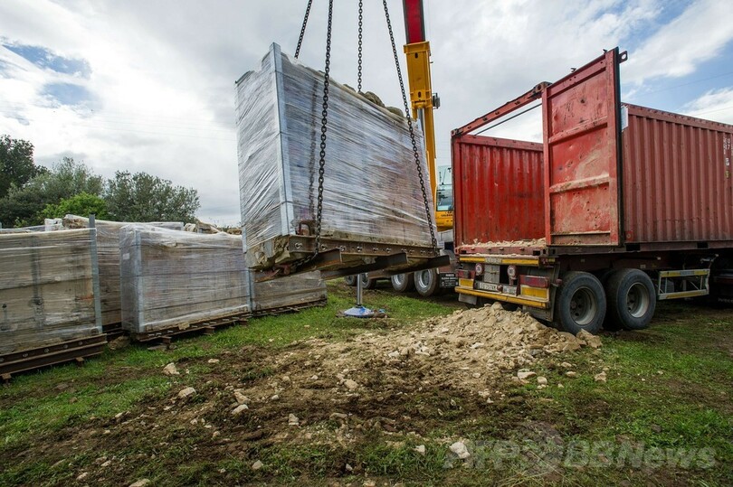 しかしイタリアの遺跡管理当局からの許可が下りず、同国のジョイアタウロ(Gioia Tauro)港で6か月もの間、足止めされていた。(c)AFP