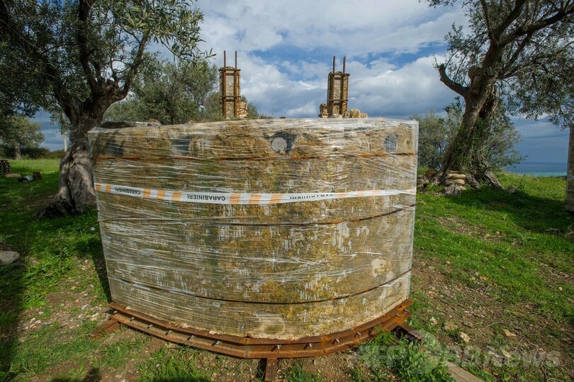 しかしイタリアの遺跡管理当局からの許可が下りず、同国のジョイアタウロ(Gioia Tauro)港で6か月もの間、足止めされていた。(c)AFP