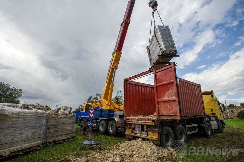 しかしイタリアの遺跡管理当局からの許可が下りず、同国のジョイアタウロ(Gioia Tauro)港で6か月もの間、足止めされていた。(c)AFP