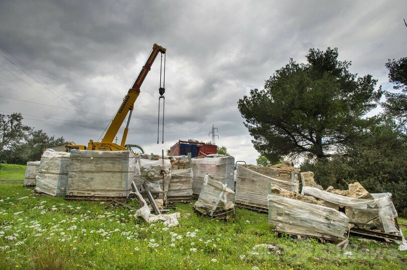 しかしイタリアの遺跡管理当局からの許可が下りず、同国のジョイアタウロ(Gioia Tauro)港で6か月もの間、足止めされていた。(c)AFP