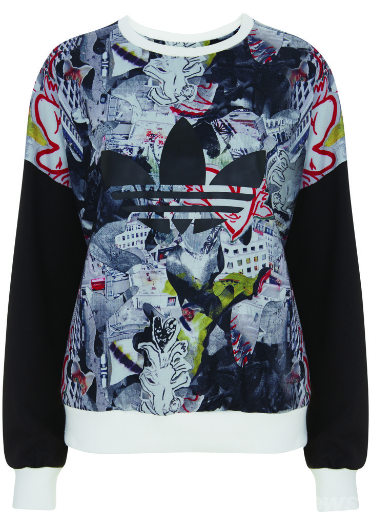 スウェットやフーディ、トラックトップからスリーストライプスシューズまで、計12アイテムが登場。各アイテムには「トップショップ」がロンドンの風景からインスピレーションを得て制作したエクスクルーシブなオリジナルプリントがあしらわれている。またシルキーなキュプラ素材や動きやすいトリコット生地を採用し、機能面にも配慮。フットウェアコレクションは、大人気のSS、テックスーパー、アティチュードの3型でコラボレーションを実現した。
