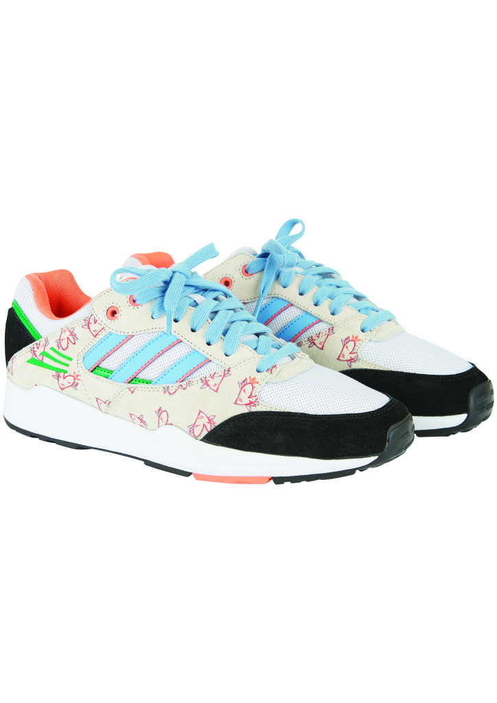 スウェットやフーディ、トラックトップからスリーストライプスシューズまで、計12アイテムが登場。各アイテムには「トップショップ」がロンドンの風景からインスピレーションを得て制作したエクスクルーシブなオリジナルプリントがあしらわれている。またシルキーなキュプラ素材や動きやすいトリコット生地を採用し、機能面にも配慮。フットウェアコレクションは、大人気のSS、テックスーパー、アティチュードの3型でコラボレーションを実現した。