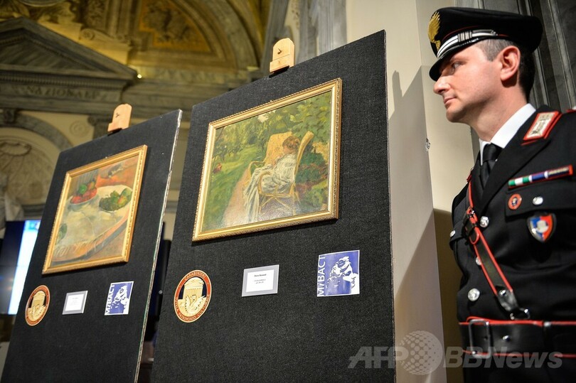 同日に記者会見した警察によると、ゴーギャンの作品は1000万~3000万ユーロ(約14億3000万~43億円)、ボナールの作品は約60万ユーロ(約8600万円)の価値があるとみられる。