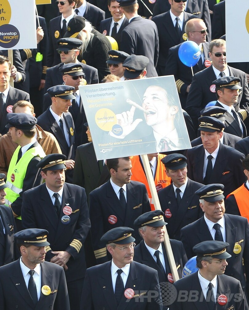 【4月3日 AFP】ドイツ最大の航空会社ルフトハンザ航空(Lufthansa)のパイロットたちが2日、賃上げと退職条件改善を求め、同社史上最大規模のストライキを開始した。4日までの3日間に約3800便が欠航となり、42万5000人の乗客が影響を受ける見込みだ。