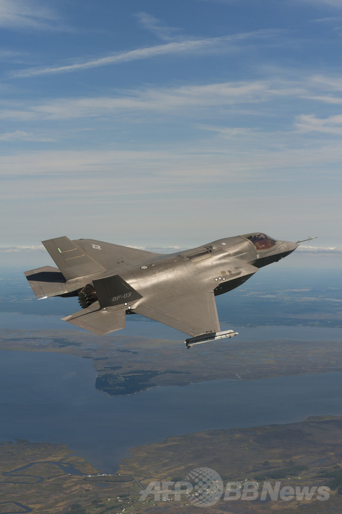 【4月5日 AFPBB News】航空自衛隊の次期主力戦闘機に採用が決まっているF35統合打撃戦闘機(Joint Strike Fighter、JSF)ライトニングII(Lightning II)を写真で紹介。高いステルス性を備え、超音速飛行が可能で高度なソフトウエアを搭載するF35は「空飛ぶコンピューター」とも呼ばれるが、度重なる開発の遅れと膨れあがる開発費に懸念する声も上がっている。(c)AFPBB News