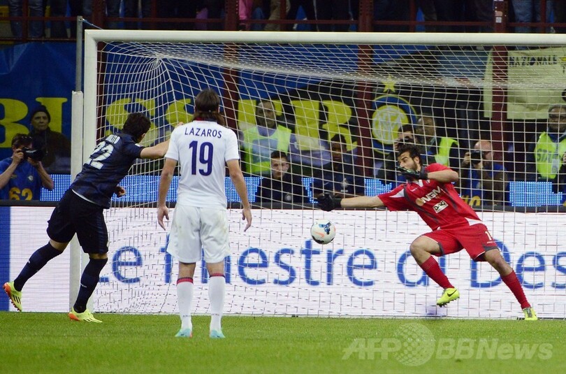 そしてインテルは後半38分、ロドリゴ・パラシオ(Rodrigo Palacio)がペナルティーエリア内で倒されてPKを獲得したが、ミリートのシュートはボローニャのGKジャンルカ・クルチ(Gianluca Curci)にセーブされ、勝ち越すことはできなかった。(c)AFP