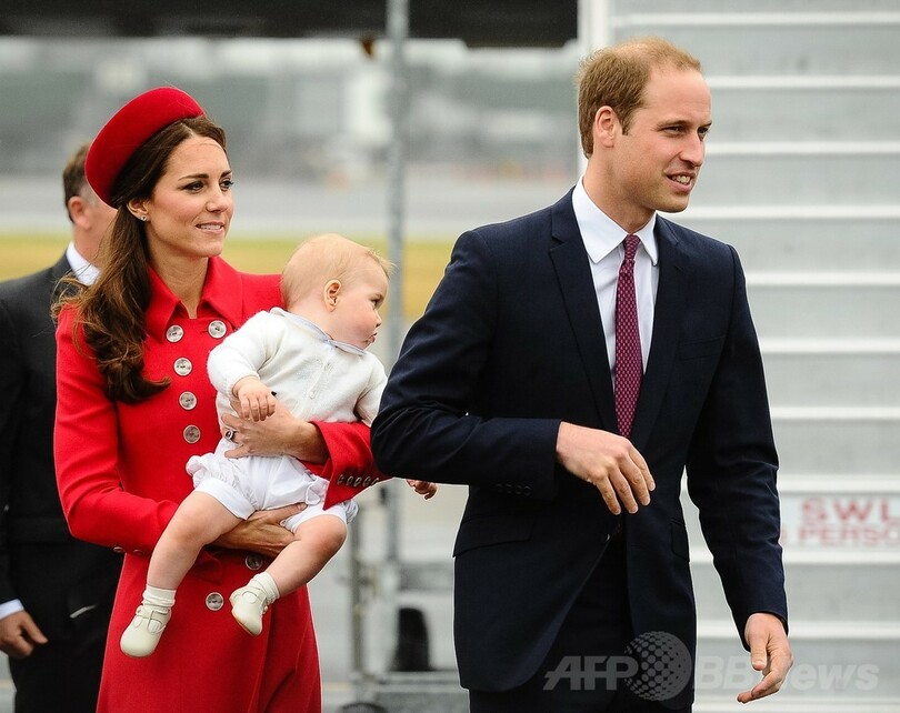 【4月7日 AFP】英国のウィリアム王子(Prince William)とキャサリン妃(Catherine, Duchess of Cambridge)夫妻は7日、長男のジョージ王子(Prince George)を伴ってニュージーランドの首都ウェリントン(Wellington)に到着した。生後8か月のジョージ王子にとって初の外遊となる。