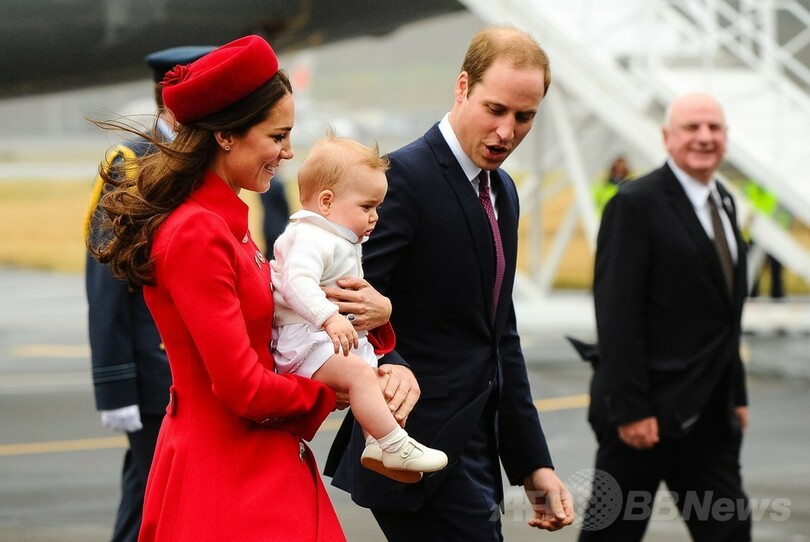 【4月7日 AFP】英国のウィリアム王子(Prince William)とキャサリン妃(Catherine, Duchess of Cambridge)夫妻は7日、長男のジョージ王子(Prince George)を伴ってニュージーランドの首都ウェリントン(Wellington)に到着した。生後8か月のジョージ王子にとって初の外遊となる。
