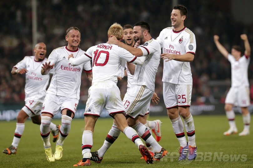【4月8日 AFP】(記事更新)13-14イタリア・セリエAは7日、第32節の試合が行われ、ACミラン(AC Milan)の本田圭佑(Keisuke Honda)がリーグ戦初ゴールを決めた。試合はACミランが2-1でジェノア(Genoa CFC)に勝利した。