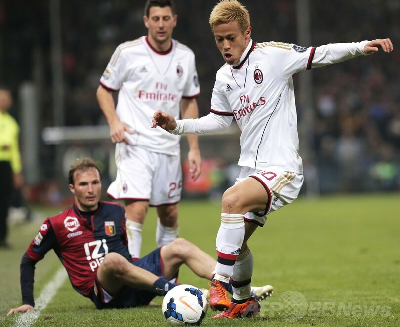 【4月8日 AFP】(記事更新)13-14イタリア・セリエAは7日、第32節の試合が行われ、ACミラン(AC Milan)の本田圭佑(Keisuke Honda)がリーグ戦初ゴールを決めた。試合はACミランが2-1でジェノア(Genoa CFC)に勝利した。