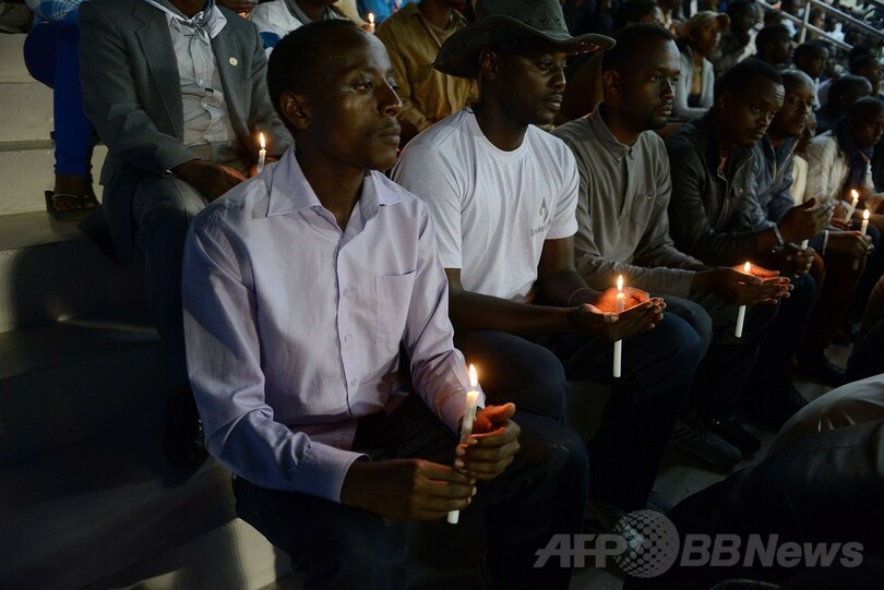 ろうそくの炎で犠牲者を追悼、ルワンダ大虐殺から20年