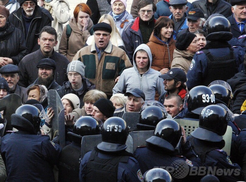 ウクライナ東部のハリコフ(Kharkiv)、ルガンスク(Lugansk)、ドネツク(Donetsk)では6日、行政庁舎が親ロシア派に占拠された。このうちドネツクでは、親ロシア派がウクライナからの独立を宣言し、ロシア編入の可否を問う住民投票を実施すると明言している。