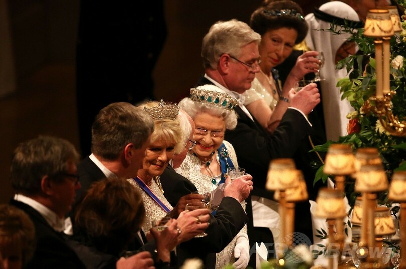 英国のエリザベス女王(Queen Elizabeth II)、デービッド・キャメロン(David Cameron)首相らが出席した晩さん会は、かつて敵対していた両国間で近年進む関係改善をさらに強固にすることが狙い。両国の関係は、エリザベス女王が2011年にアイルランドを訪問したことで、新局面を迎えていた。