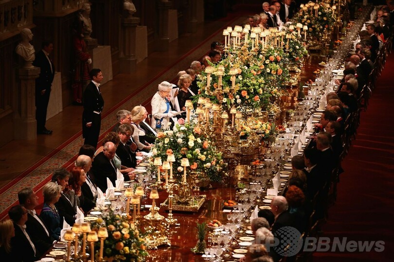 英国のエリザベス女王(Queen Elizabeth II)、デービッド・キャメロン(David Cameron)首相らが出席した晩さん会は、かつて敵対していた両国間で近年進む関係改善をさらに強固にすることが狙い。両国の関係は、エリザベス女王が2011年にアイルランドを訪問したことで、新局面を迎えていた。