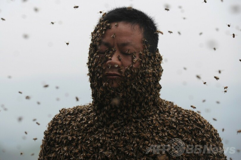 ニュース ライフ こぼれ話 ミツバチ46万匹まとう「ハチ男」、中国 2014年4月10日 16:58 発信地:重慶/中国 [ 中国・台湾 中国 ] このニュースをシェア ‹ › ❮ 5/15 ❯ 中国・重慶(Chongqing)で、全身にミツバチをまとう養蜂家のシャ平(She Ping)さん(2014年4月9日撮影)。(c)AFP 画像作成中 ! 【4月10日 AFP】中国・重慶(Chongqing)で9日、地元の養蜂家の男性が全身にミツバチをまとうパフォーマンスを行った。 地元紙によると、養蜂家のシャ平(She Ping)さん(34)は、ハチ46万匹以上、45.65キロ相当の「ハチ衣」を約40分間、全身にまとったという。(c)AFP ライフ 一覧へ> メディア・報道関係・法人の方向け 写真・動画 購入のお問合せ>
