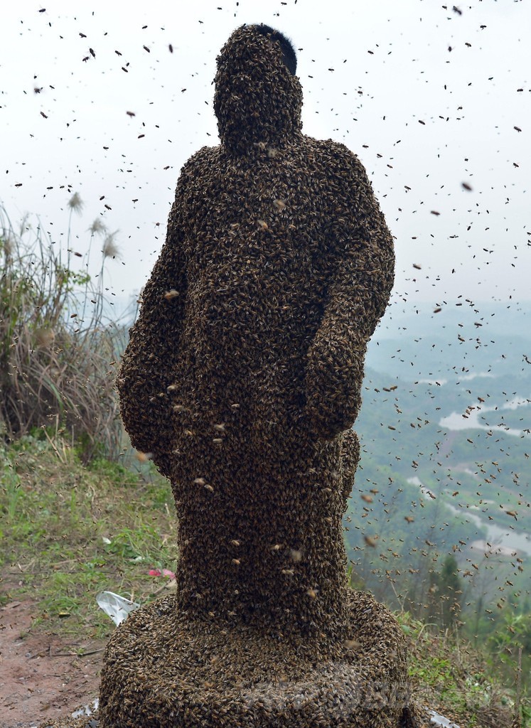 ニュース ライフ こぼれ話 ミツバチ46万匹まとう「ハチ男」、中国 2014年4月10日 16:58 発信地:重慶/中国 [ 中国・台湾 中国 ] このニュースをシェア ‹ › ❮ 6/15 ❯ 中国・重慶(Chongqing)で、全身にミツバチをまとった養蜂家のシャ平(She Ping)さん(2014年4月9日撮影)。(c)AFP 画像作成中 ! 【4月10日 AFP】中国・重慶(Chongqing)で9日、地元の養蜂家の男性が全身にミツバチをまとうパフォーマンスを行った。 地元紙によると、養蜂家のシャ平(She Ping)さん(34)は、ハチ46万匹以上、45.65キロ相当の「ハチ衣」を約40分間、全身にまとったという。(c)AFP ライフ 一覧へ> メディア・報道関係・法人の方向け 写真・動画 購入のお問合せ>