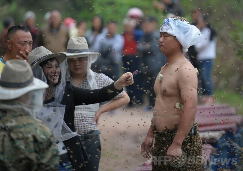 ニュース ライフ こぼれ話 ミツバチ46万匹まとう「ハチ男」、中国 2014年4月10日 16:58 発信地:重慶/中国 [ 中国・台湾 中国 ] このニュースをシェア ‹ › ❮ 8/15 ❯ 中国・重慶(Chongqing)で、全身にミツバチをまとう準備をする養蜂家のシャ平(She Ping)さん(2014年4月9日撮影)。(c)AFP 画像作成中 ! 【4月10日 AFP】中国・重慶(Chongqing)で9日、地元の養蜂家の男性が全身にミツバチをまとうパフォーマンスを行った。 地元紙によると、養蜂家のシャ平(She Ping)さん(34)は、ハチ46万匹以上、45.65キロ相当の「ハチ衣」を約40分間、全身にまとったという。(c)AFP ライフ 一覧へ> メディア・報道関係・法人の方向け 写真・動画 購入のお問合せ>