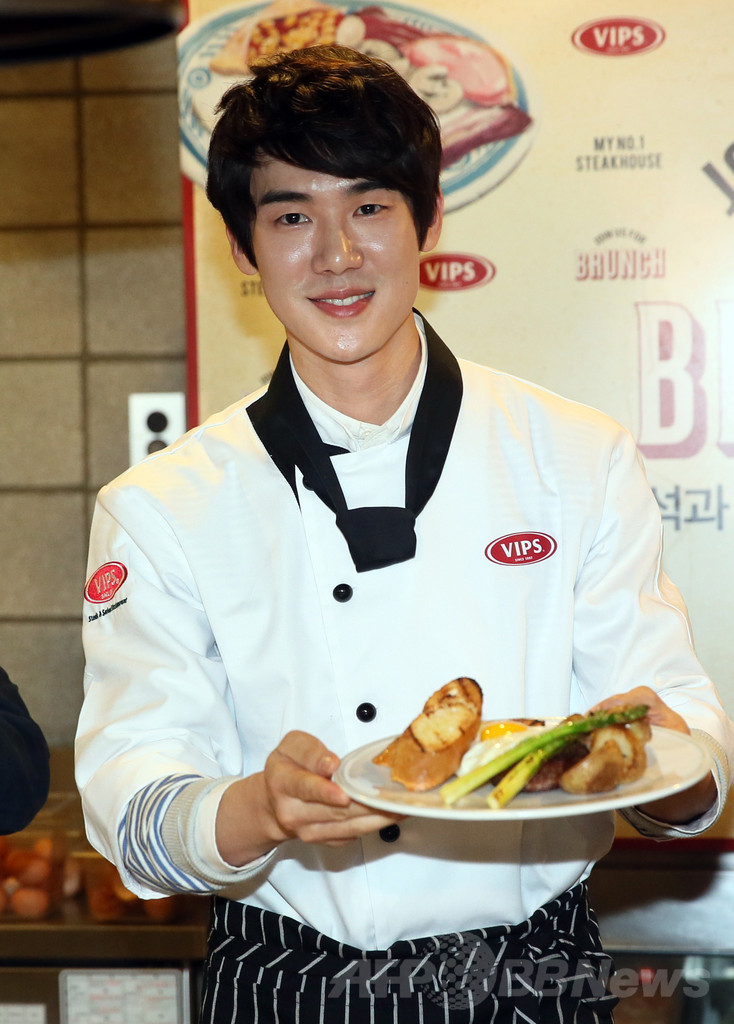 【4月15日 STARNEWS】韓国・ソウル(Seoul)の明洞(Myeong-dong)にあるファミリーレストラン「VIPS」中央(Chuo)店で9日、「VIPSブランチ」のゲリライベントが開かれ、シェフに扮(ふん)した俳優のユ・ヨンソク(Yoo Yeon-Seok)が登場した。(c)STARNEWS