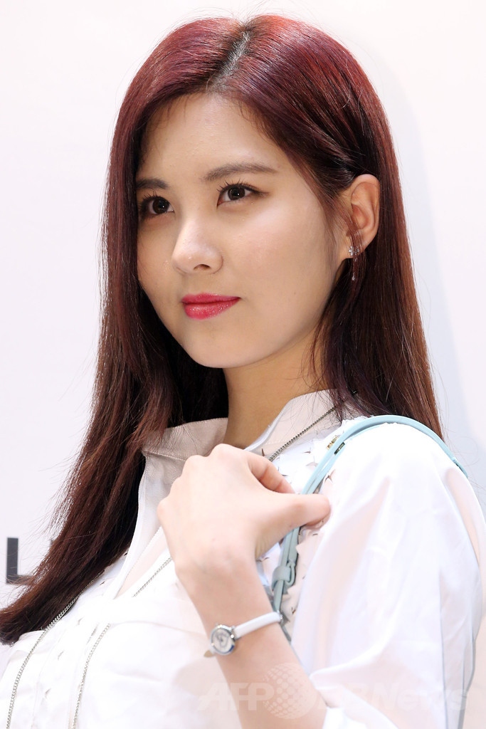【4月15日 STARNEWS】韓国・ソウル(Seoul)のロッテ百貨店(Lotte Department Store)で9日、デザイナーバッグブランド「ヘリアンタス(HELIANTHUS)」による2014年春夏の新商品「レスリー(LESLEY)」シリーズの発売記念イベントが開かれ、ガールグループ「少女時代(Girls' Generation、SNSD)」のソヒョン(Seohyun)が出席した。(c)STARNEWS