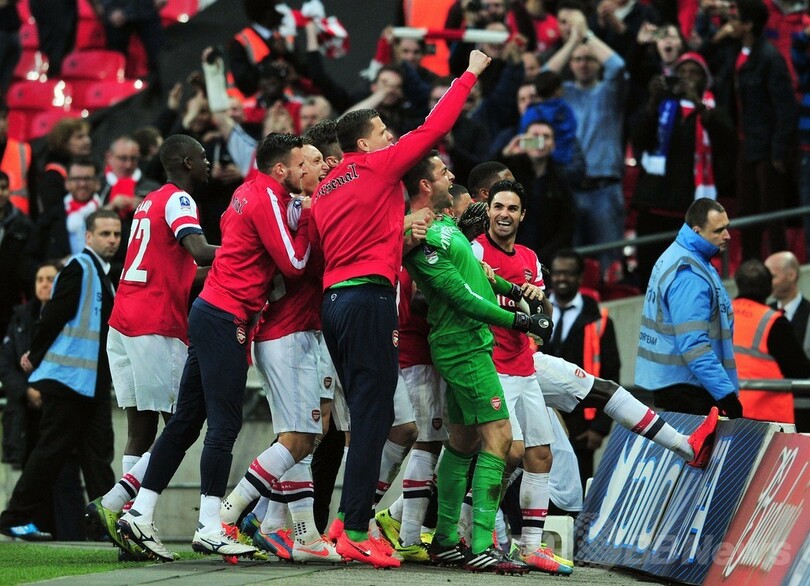アーセナルは、GKルカシュ・ファビアンスキ(Lukasz Fabianski)がPK戦で2本のシュートをセーブする活躍を見せ、前回大会(FA Cup 2012-13)覇者のウィガンを退けた。